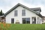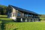 Ein Wohngebäude mit einer Konstruktion aus Holz in einer einfachen rechteckigen Grundform auf einem Sockelgeschoss aus Beton und Mauerwerk. Ein weit auskragendes Satteldach schützt die Holzkonstruktion vor Witterungseinflüssen und bestimmt als gestaltendes Element die Architektur des Gebäudes. Auch im Inneren wurden weitgehend natürliche Baustoffe verwendet.